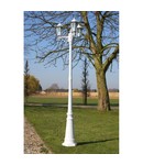 Deze klassieke tuinlantaarn heeft 3 armen en een lengte van 215 centimeter. De tuin lantaarn heeft een maximaal wattage van 60 Watt per lamp en kan daarmee perfect worden gebruikt voor het verlichten van uw tuin, terras of oprijlaan. De lampenkappen van de tuinlamp zijn gemaakt van glas en het witte frame en standaard zijn beiden gemaakt van sterk aluminium.